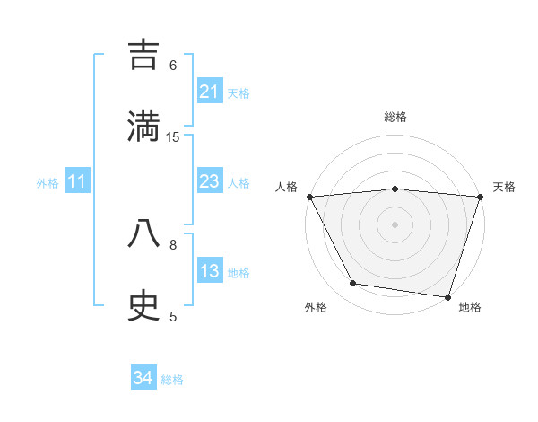 吉満 八史さんの天格は21画の5点!