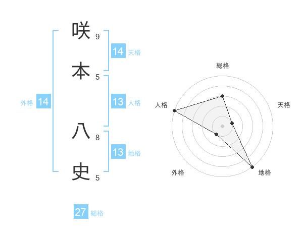 咲本 八史さんの総格は27画の3点!