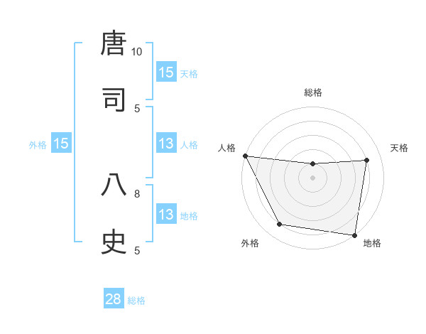 唐司 八史さんの天格は15画の4点!