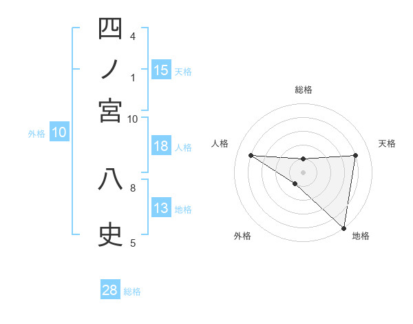 四ノ宮 八史さんの天格は15画の4点!