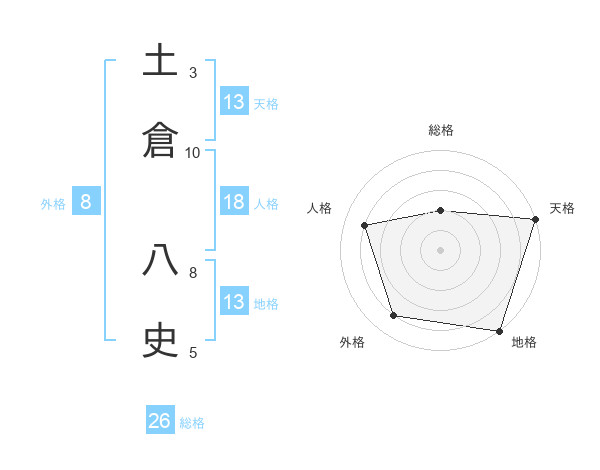 土倉 八史さんの天格は13画の5点!
