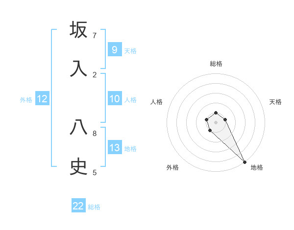 坂入 八史さんを姓名の画数から五運を鑑定