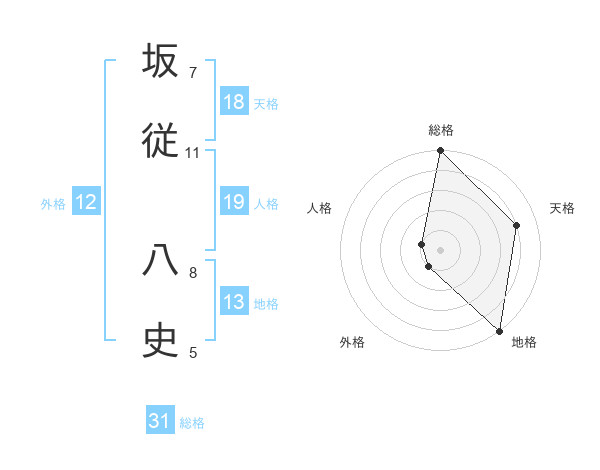 坂従 八史さんの総格は31画の5点!
