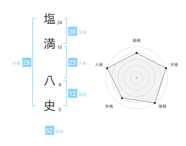 塩満 八史さんの総格は52画の4点!