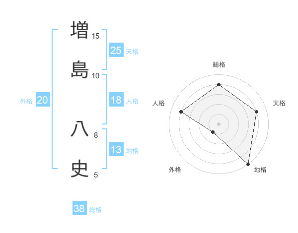 増島 八史さんの総格は38画の4点!