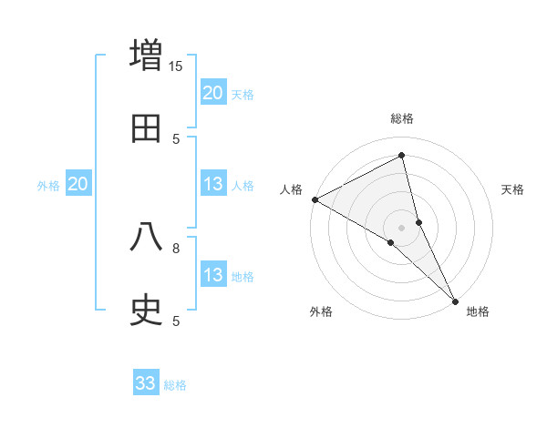 増田 八史さんの総格は33画の4点!