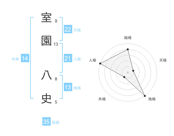 室園 八史さんの総格は35画の4点!