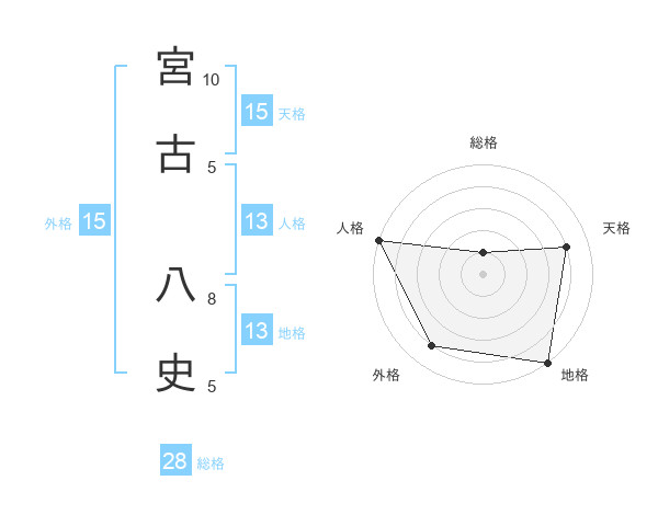 宮古 八史さんの地格は13画の5点!