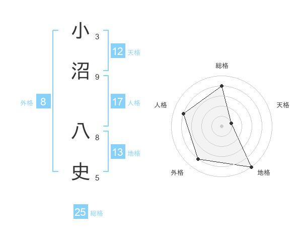 小沼 八史さんの天格は12画の1点!