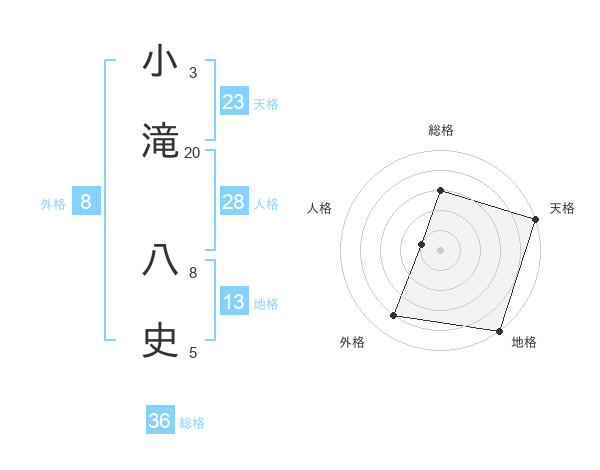 小滝 八史さんの天格は23画の5点!
