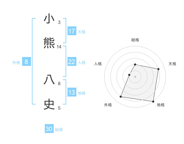 小熊 八史さんの総格は30画の2点!