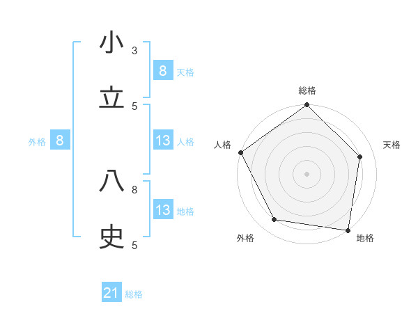 小立 八史さんの地格は13画の5点!