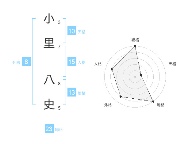 小里 八史さんの総格は23画の5点!