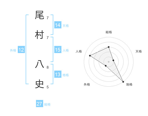 尾村 八史さんの人格は15画の4点!