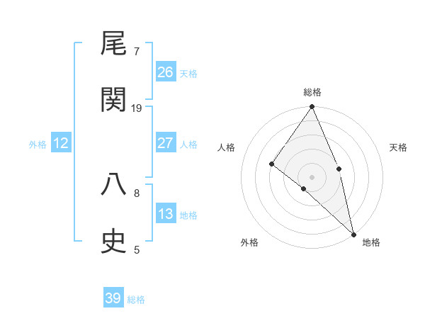 尾関 八史さんの総格は39画の5点!