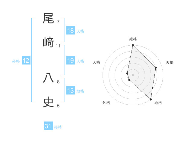 尾﨑 八史さんを姓名の画数から五運を鑑定