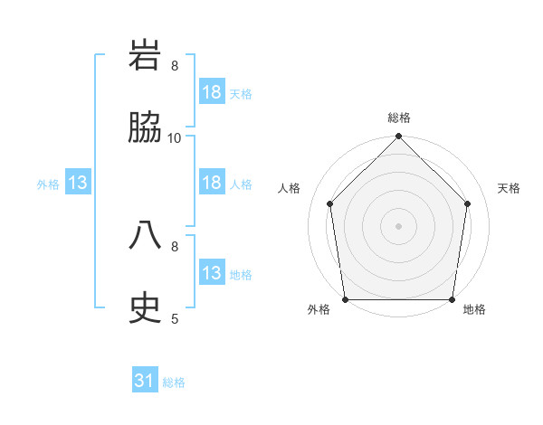 岩脇 八史さんの総格は31画の5点!