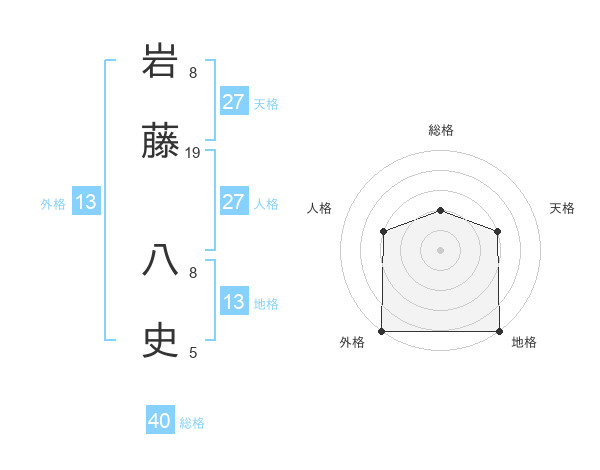 岩藤 八史さんの外格は13画の5点!