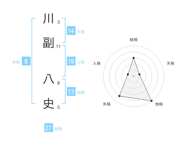 川副 八史さんの総格は27画の3点!