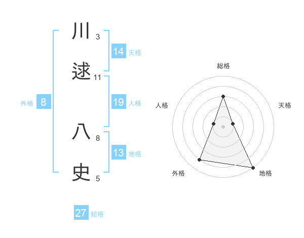 川逑 八史さんの総格は27画の3点!