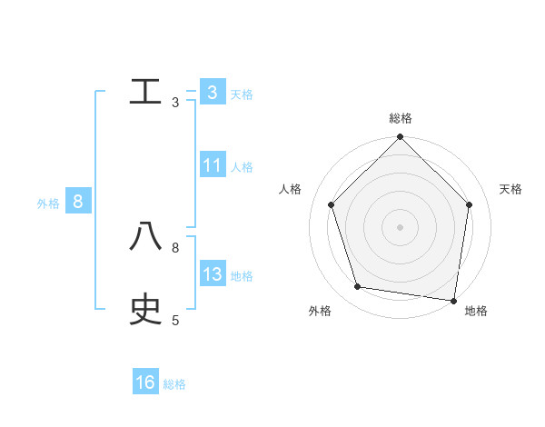 工 八史さんの総格は16画の5点!