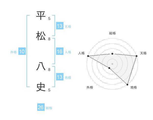 平松 八史さんの天格は13画の5点!