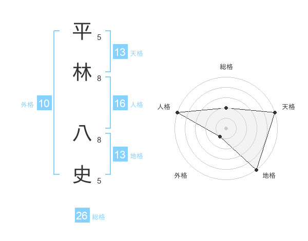 平林 八史さんの天格は13画の5点!