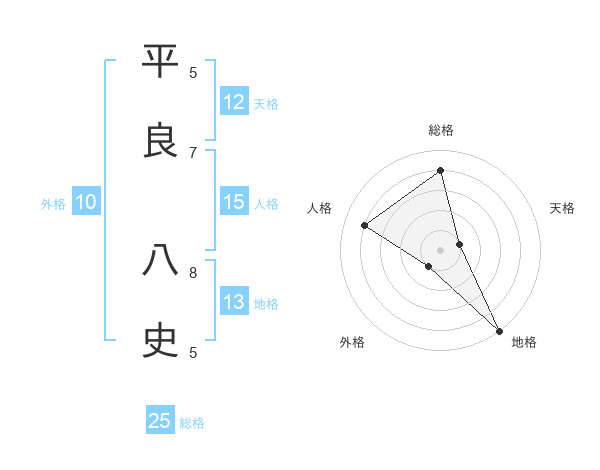 平良 八史さんの総格は25画の4点!