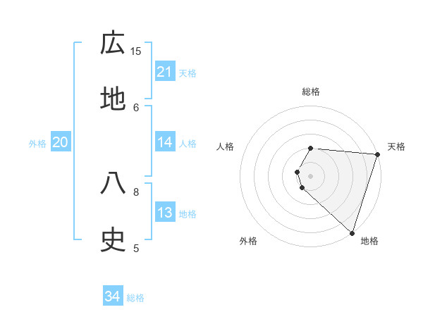 広地 八史さんの天格は21画の5点!