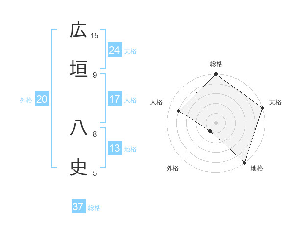 広垣 八史さんの総格は37画の5点!