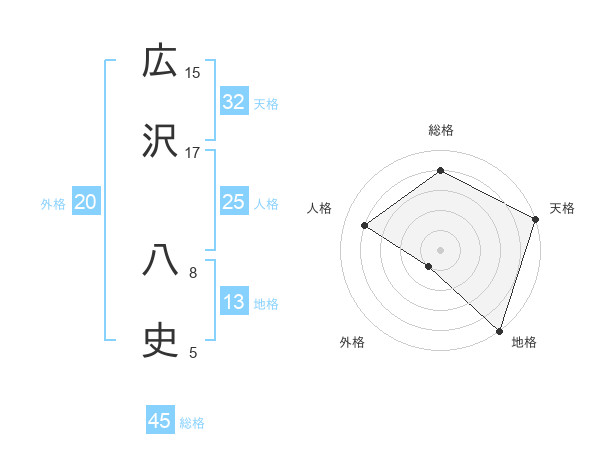 広沢 八史さんの天格は32画の5点!