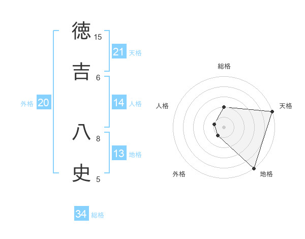 徳吉 八史さんの天格は21画の5点!