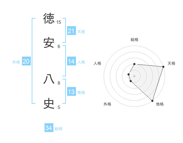 徳安 八史さんの天格は21画の5点!