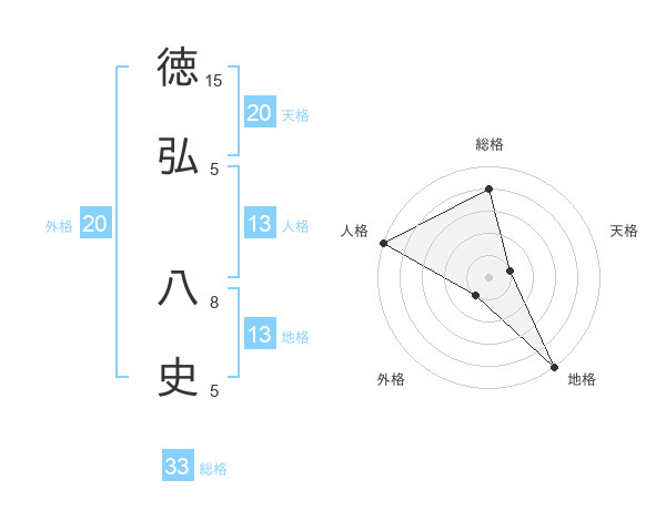 徳弘 八史さんの地格は13画の5点!