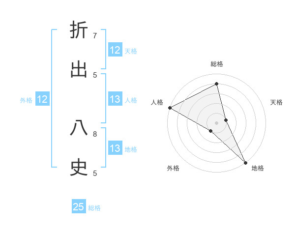 折出 八史さんの地格は13画の5点!