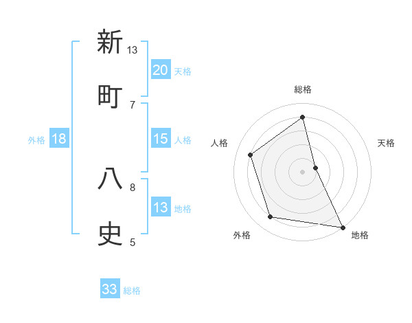 新町 八史さんの地格は13画の5点!