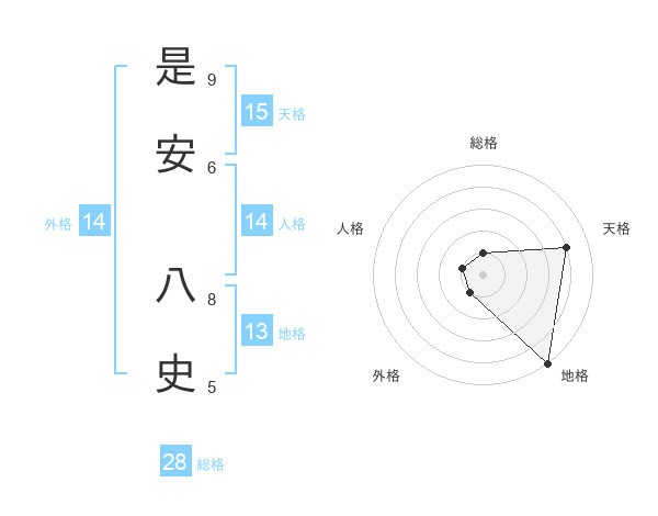 是安 八史さんの天格は15画の4点!
