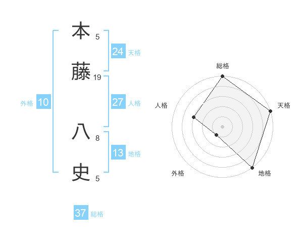 本藤 八史さんの総格は37画の5点!