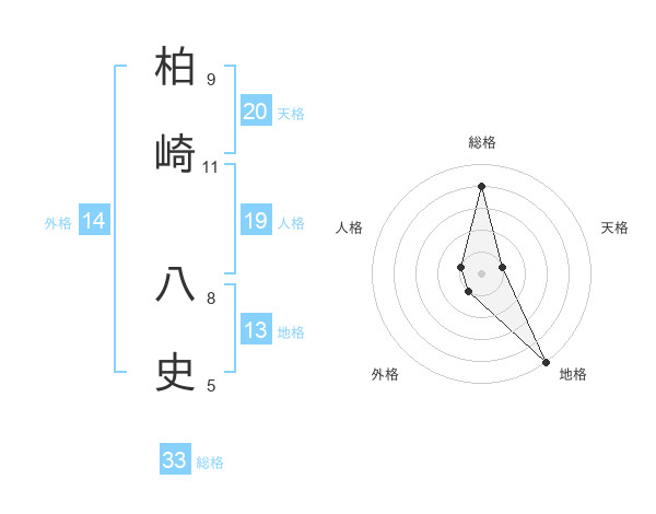 柏崎 八史さんの総格は33画の4点!