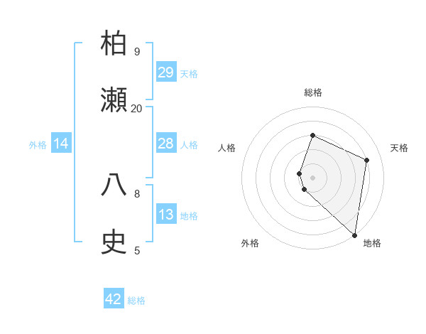 柏瀬 八史さんの総格は42画の3点!