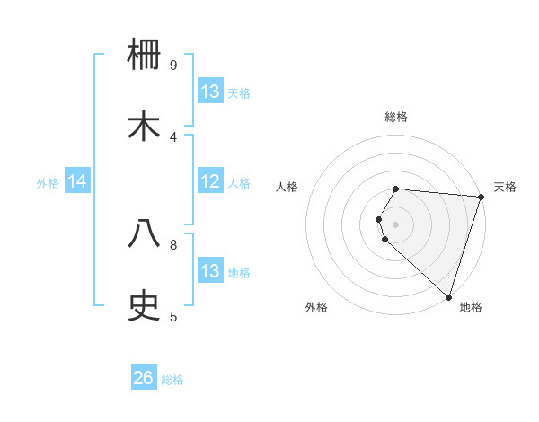 柵木 八史さんの天格は13画の5点!