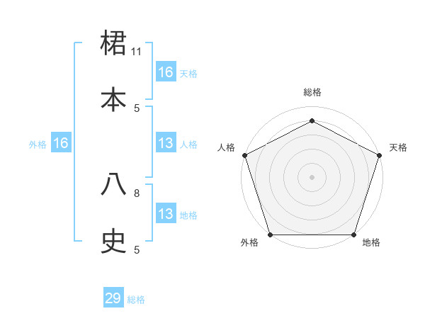 桾本 八史さんの総格は29画の4点!