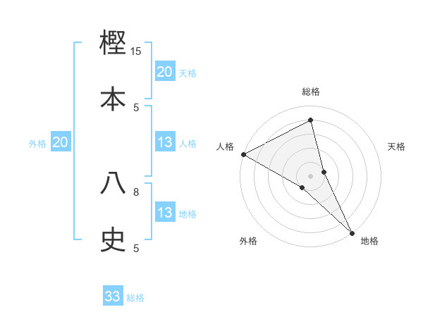 樫本 八史さんの総格は33画の4点!