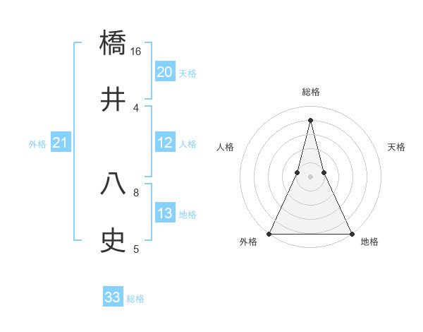 橋井 八史さんの外格は21画の5点!