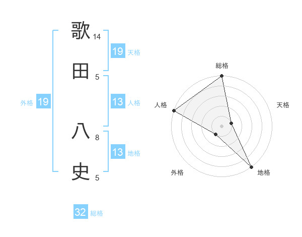 歌田 八史さんの総格は32画の5点!