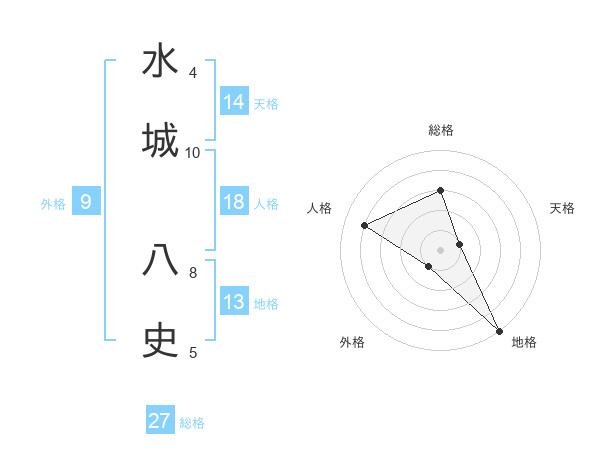 水城 八史さんの地格は13画の5点!