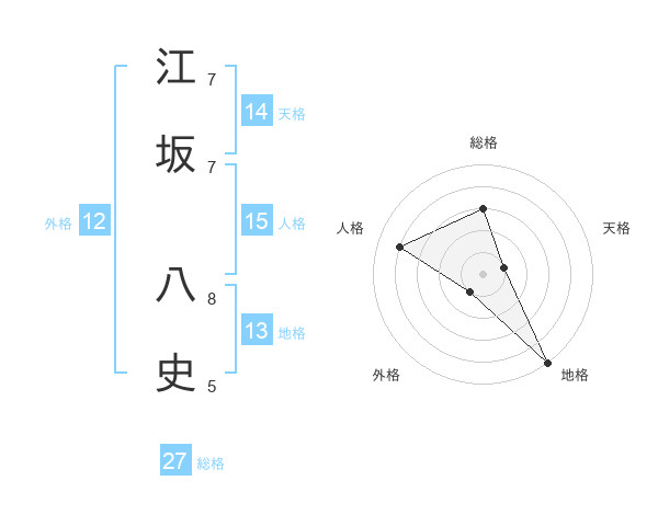 江坂 八史さんの総格は27画の3点!