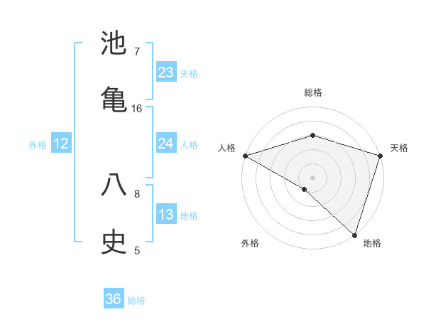 池亀 八史さんの天格は23画の5点!