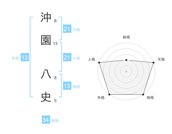 沖園 八史さんの外格は13画の5点!