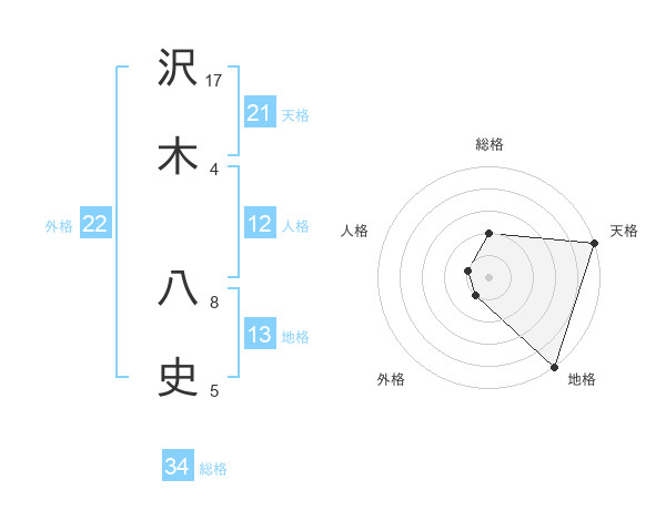 沢木 八史さんの天格は21画の5点!